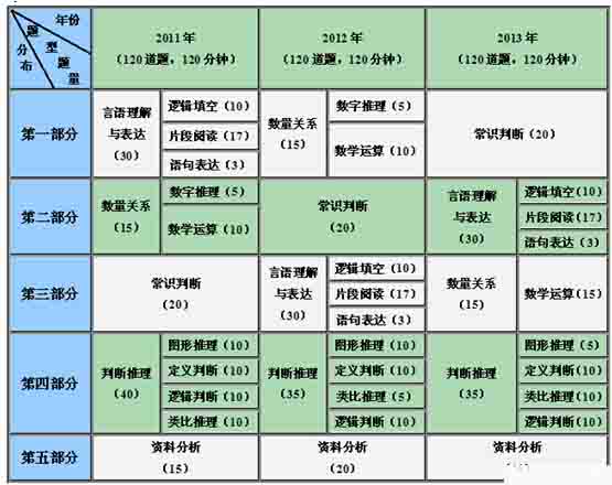 2011-2013年下半年四川公務(wù)員錄用考試行測(cè)題型題量分布