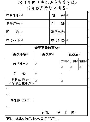 2014年國考報(bào)名信息更改申請表