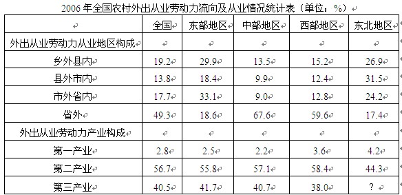 5.關(guān)于農(nóng)村外出從業(yè)勞動力的描述,能夠從上述資料中推出的是:( )