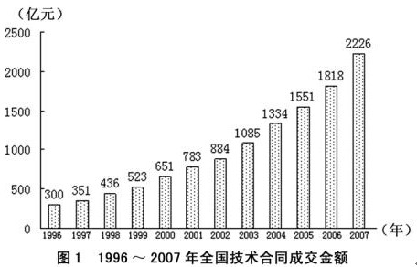 全國2007年認定登記的技術(shù)合同共計220868項,同比增長7%,總成交金額2226億元,同比增長22.44%;平均每項技術(shù)合同成交金額突破百萬元大關(guān),達到100.78萬元。
