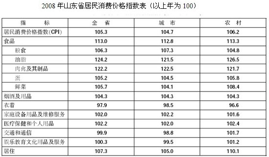 B.2008年,山東省居民消費(fèi)價(jià)格、工業(yè)品出廠價(jià)格和原材料、燃料、動(dòng)力購(gòu)進(jìn)價(jià)格均高于上年同期