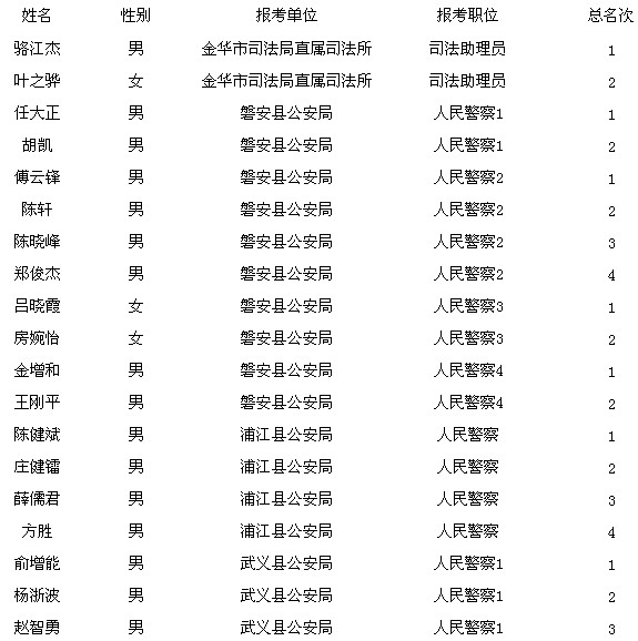 摘要 2013年浙江省金華市政法干警體檢名單公布