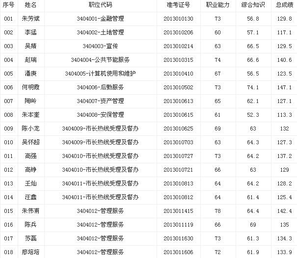 資格審查人選按考生報(bào)考的崗位招考計(jì)劃數(shù),依筆試總成績(jī)從高分到低分等額確定(筆試總成績(jī)相同的,按《職業(yè)能力測(cè)試》科目成績(jī)高低順序排序),具體資格復(fù)審人員名單見附件。
