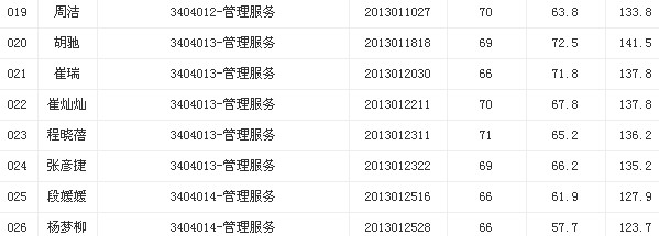 2013年安徽蚌埠政法干警遞補(bǔ)體能測(cè)試結(jié)果