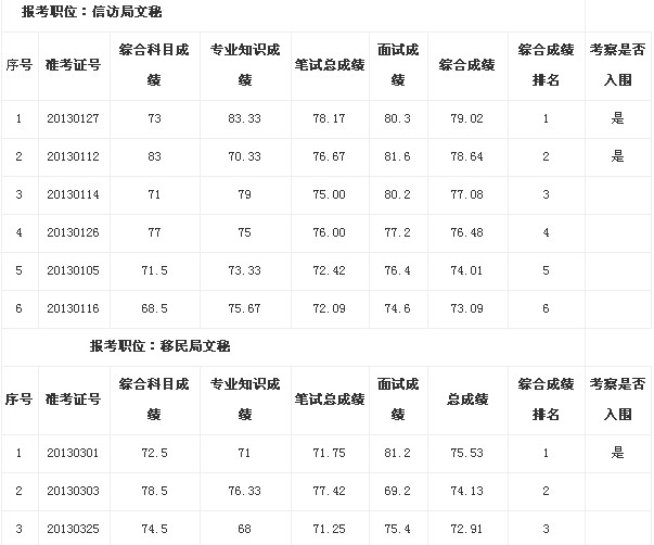 2013年湖南省邵陽(yáng)市機(jī)關(guān)單位公務(wù)員綜合成績(jī)公布如下: