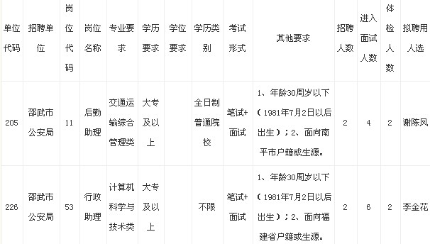 摘要 2012年福建省邵武市事業(yè)單位擬錄用名單公示