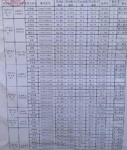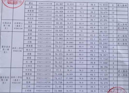 2013年四川政法干警法院成績及體檢名單公布如下: