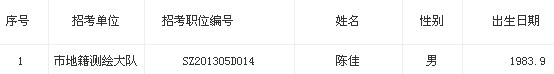 根據(jù)深圳市事業(yè)單位2013年5月公開招考專業(yè)技術(shù)崗位工作人員的統(tǒng)一安排,現(xiàn)對擬補錄人選予以公示。