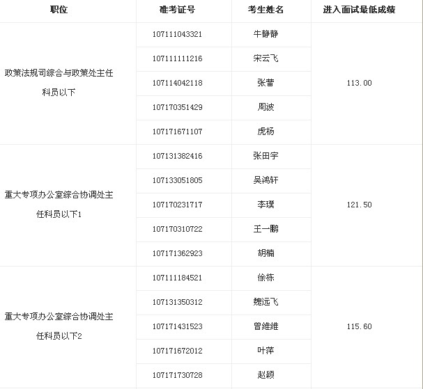 2014年科技部公務(wù)員招考面試名單