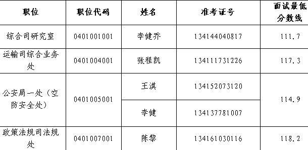 因部分進(jìn)入我局面試名單的考生自愿放棄面試資格,按照公務(wù)員考試錄用工作有關(guān)規(guī)定,從公共科目筆試合格考生中,按筆試分?jǐn)?shù)排序依次遞補(bǔ)以下面試人員:
