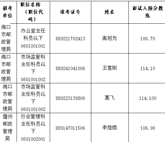 請以上考生按照《海南省郵政管理局2014年度考試錄用公務(wù)員面試公告》的要求,在2月12日之前進行資格確認和遞交資格預(yù)審材料,并按要求參加資格復(fù)審和面試。聯(lián)系電話:0898-66555948。