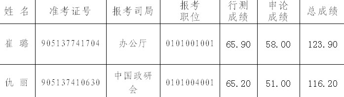 因個別進入面試范圍的考生自愿放棄面試資格,現(xiàn)根據(jù)公務(wù)員考錄調(diào)劑原則,在筆試合格考生中,按成績由高到低的順序,遞補面試人員,名單如下: