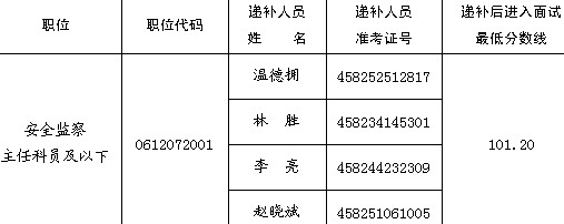 因部分進(jìn)入面試名單人員自愿放棄面試資格,根據(jù)公務(wù)員考錄有關(guān)規(guī)定,擬進(jìn)行遞補(bǔ),現(xiàn)將考錄面試遞補(bǔ)人員名單公告如下: