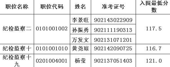 遞補(bǔ)考生名單(每個職位按照姓氏拼音排序):