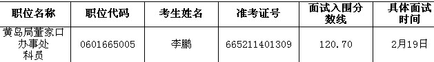 因考生放棄面試資格,根據(jù)公務(wù)員招考有關(guān)規(guī)定,在公共科目筆試合格的考生中,按照筆試成績從高到低的順序,遞補(bǔ)以下考生為面試人選: