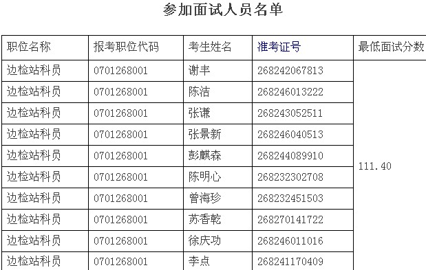 在報(bào)考我總站的公共科目筆試合格人員中,按照各職位考生筆試成績從高到低的順序,以計(jì)劃錄用人數(shù)3倍的比例確定面試人員。面試人員名單、最低面試分?jǐn)?shù)見附件。