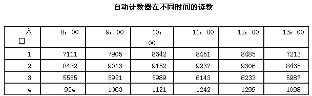 某展覽館某日四個入口自動計數器的統(tǒng)計如下:
