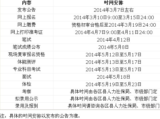 2014年上半年重慶市考錄公務(wù)員時間安排如下: