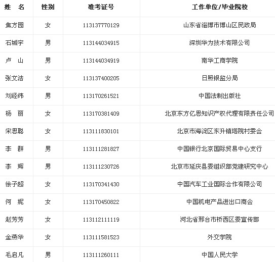 根據(jù)2014年度公務(wù)員考錄工作有關(guān)規(guī)定,在筆試、面試、體檢和考察的基礎(chǔ)上,對(duì)擬錄用的13名機(jī)關(guān)公務(wù)員、1名參照公務(wù)員法管理事業(yè)單位工作人員面向社會(huì)予以公示。公示期間,如有問題,請(qǐng)及時(shí)向民政部人事司反映。