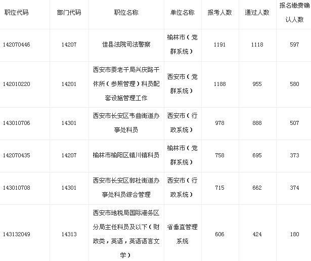 2014年陜西省公務(wù)員考試報(bào)名最冷職位(3月19日)