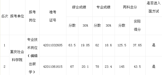 2014年重慶社會(huì)科學(xué)院事業(yè)單位考試成績(jī)公示