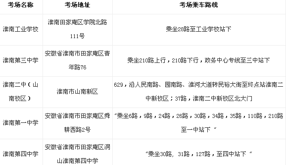 2014年安徽省公務(wù)員考試淮南考區(qū)考點(diǎn)如下: