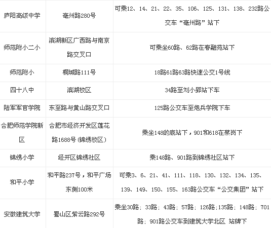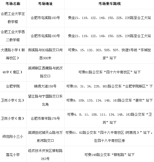 2014年安徽省公務(wù)員考試合肥考區(qū)考點(diǎn)公布如下: