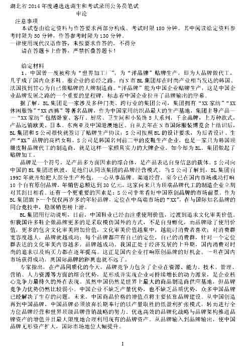 2014年湖北省公務(wù)員考試申論真題