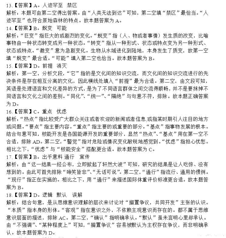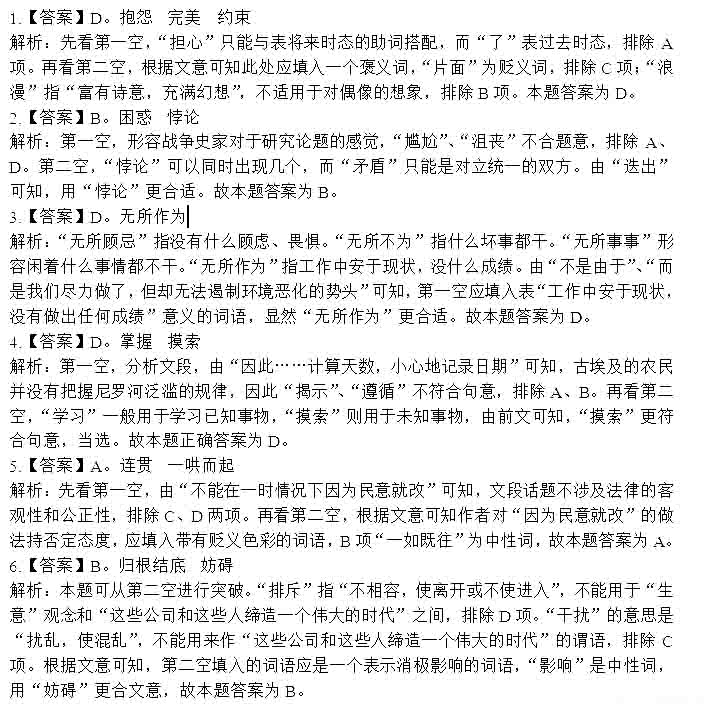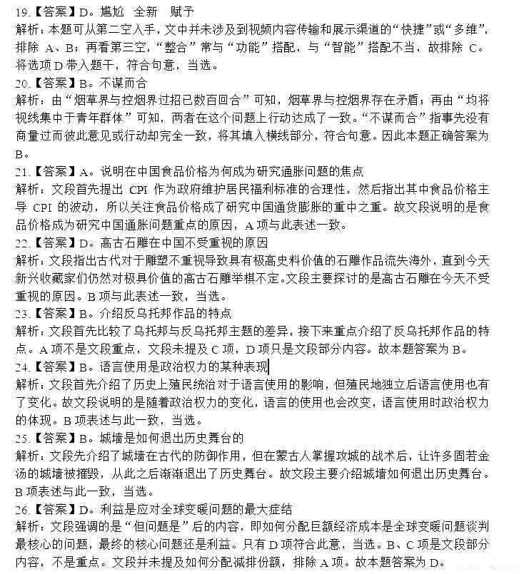 2014年遼寧省公務(wù)員考試行測答案:言語理解