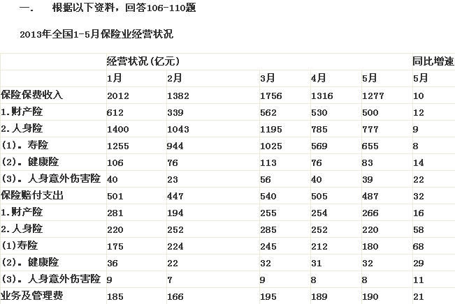 110.關(guān)于2013年1-5月保險(xiǎn)業(yè)經(jīng)營(yíng)狀況,能夠從上述資料中推出的是: