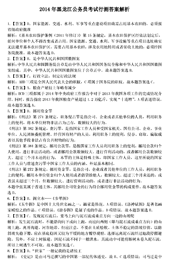 2014年黑龍江省公務員考試行測答案:常識判斷