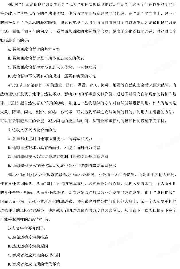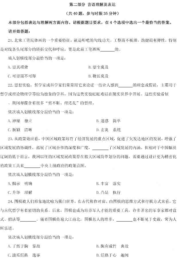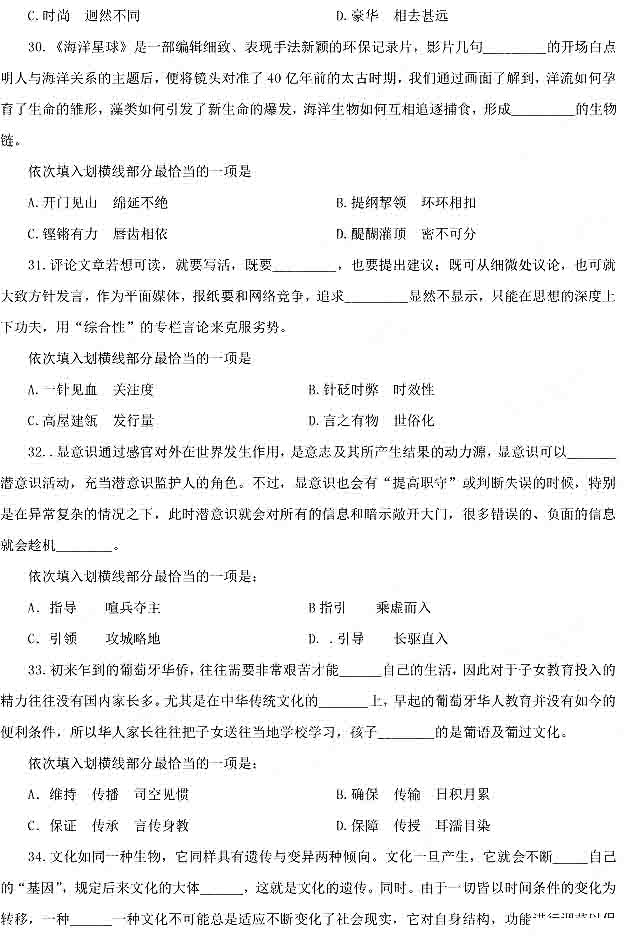 2014年下半年重慶公務(wù)員考試行測(cè)真題:言語(yǔ)理解