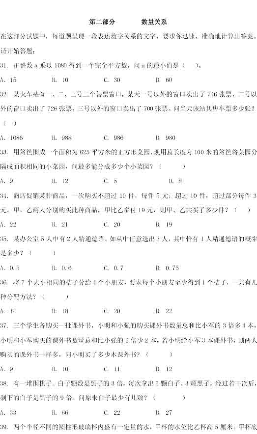 2014年河南公務(wù)員考試行測真題:數(shù)量關(guān)系