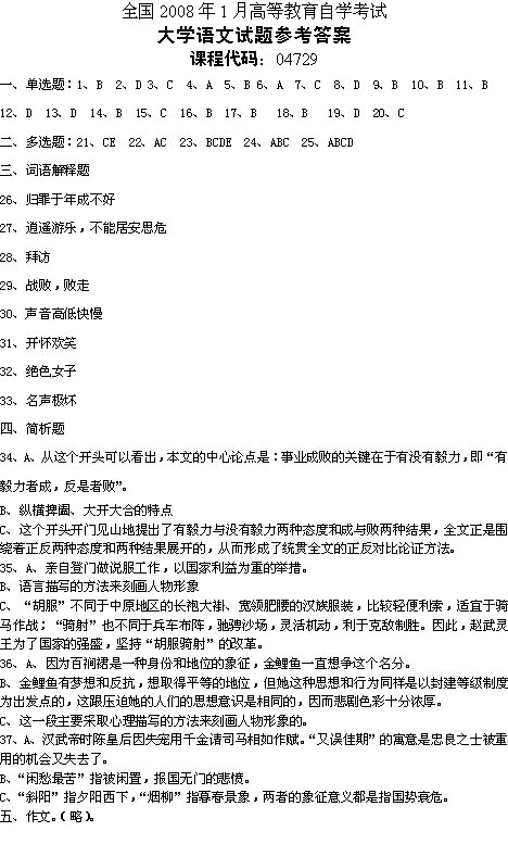 2008年1月自考試題答案大學(xué)語(yǔ)文