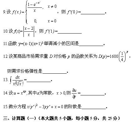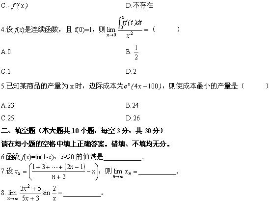 2007年4月高教自學(xué)考試高等數(shù)學(xué)(一)試題