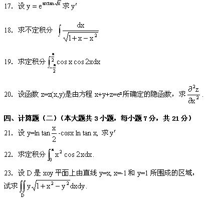 2007年7月高教自學(xué)考試高等數(shù)學(xué)(一)試題