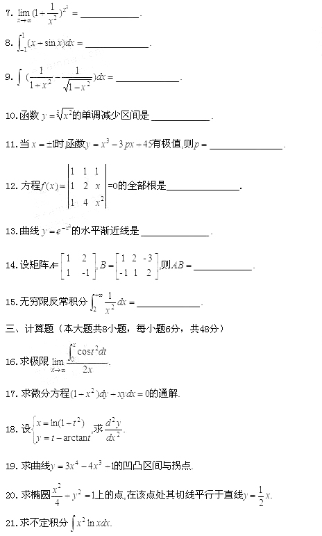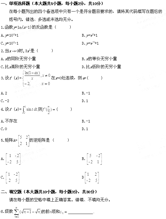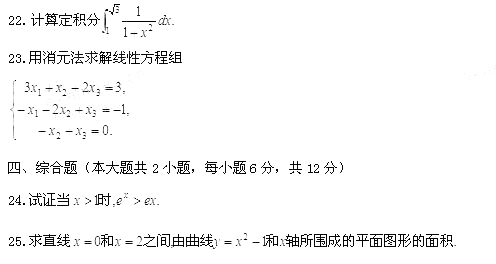 2011年1月自學(xué)考試高等數(shù)學(xué)(工專)試題