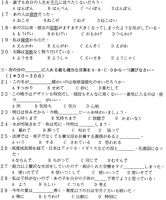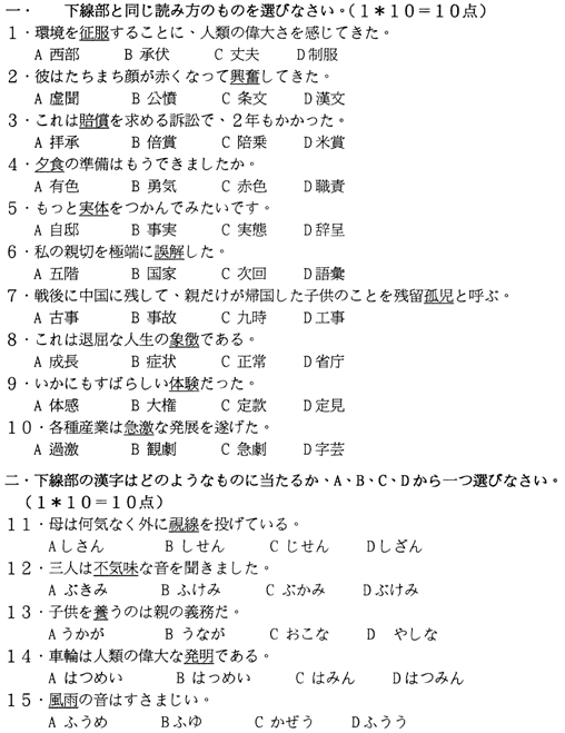 浙江省2011年4月自學(xué)考試高級日語(一)試題