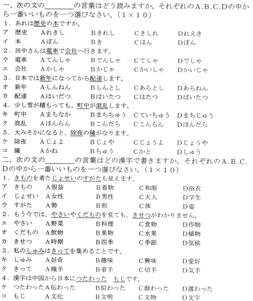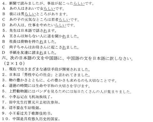基礎(chǔ)日語(一)試題