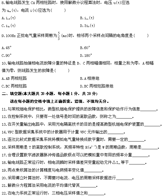 電力系統(tǒng)微型計(jì)算機(jī)繼電保護(hù)試題
