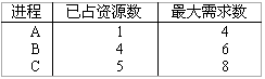 37、現(xiàn)有某類資源12個,供三個進程共享。假定進程所需資源和已占資源的情況如下表: