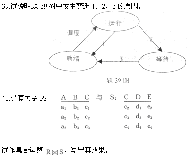if(i r[i]=r[j]; j++;} while((r[i].key<=x.key)& & (j>i))j++; if(i r[j]=r[i]; j--;} }while(i r[i]=x; } 當(dāng)對(duì)一維數(shù)組r[1..8]的鍵值序列66,72,58,21,80,19,13,64進(jìn)行函數(shù)調(diào)用fun(r,1,8) 時(shí),鍵值序列會(huì)產(chǎn)生什么結(jié)果? 六、設(shè)計(jì)題(本大題共1小題,9分) 41.有兩個(gè)棧s1和s2共享存儲(chǔ)空間c[1,m0],其中一個(gè)棧底設(shè)在c[1]處,另一個(gè)棧底設(shè)在e[m0]處,請(qǐng)編寫s1和s2的進(jìn)棧push(x,i)的函數(shù),其中i=1,2。 七、應(yīng)用題(本大題共2小題,每小題8分,共16分) 42.在采用多級(jí)(樹形)目錄結(jié)構(gòu)的文件系統(tǒng)中,用戶userl在目錄文件“\userl”中創(chuàng)建了文件f.c、f.obj、f.com和目錄文件ddl,并且在文件夾ddl下創(chuàng)建了文件c.doc;用戶user2在目錄文件“\kj\user2”中創(chuàng)建了文件aa.e、bb.p和目錄文件ddl,并且在目錄文件ddl中創(chuàng)建了文件C.C。試畫出其目錄結(jié)構(gòu)圖。 43.設(shè)有一個(gè)物資管理系統(tǒng),涉及三個(gè)實(shí)體集:DEPT(部門),WARE(倉庫)和零件(PART) DEPT有屬性:DNO(部門號(hào)),DNA(部門名) WARE有屬性:WNO(倉庫號(hào)),WMA(倉庫主任) PART有屬性:PNO(零件號(hào)),PNA(零件名),PX(型號(hào)規(guī)格),QUAN(數(shù)量) 一個(gè)部門有多個(gè)倉庫,每個(gè)倉庫存放多種零件,每個(gè)部門會(huì)使用多種零件,每種零件可存放在不同的部門的倉庫之中,以供應(yīng)給該部門生產(chǎn)時(shí)使用。 要求畫出實(shí)體―聯(lián)系模型,要特別注明實(shí)體間聯(lián)系的類型。 ?2011年4月自學(xué)考試成績查詢時(shí)間及方式匯總 更多信息請(qǐng)?jiān)L問:自學(xué)考試頻道 自學(xué)考試論壇 自學(xué)考試博客