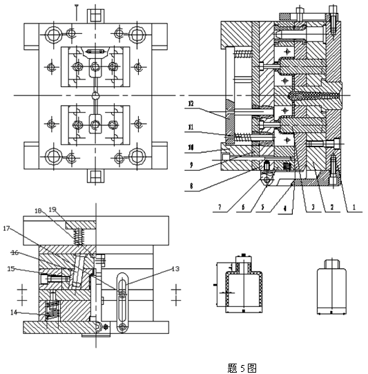 五、綜合題(看塑料模具總裝圖)。(本大題共4小題,共25分)