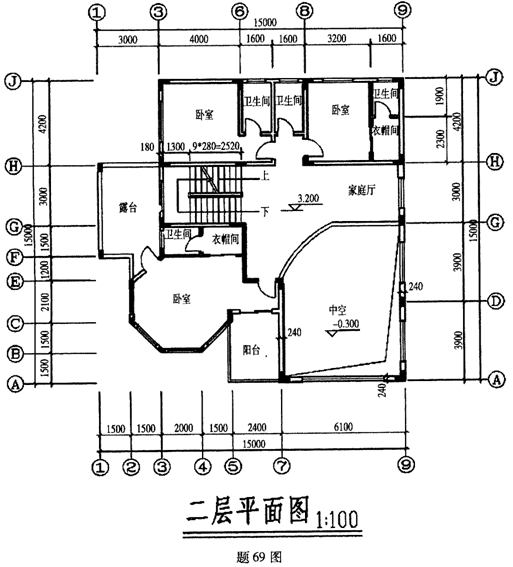 69.根據(jù)某建筑二層平面圖,論述并回答以下問題: