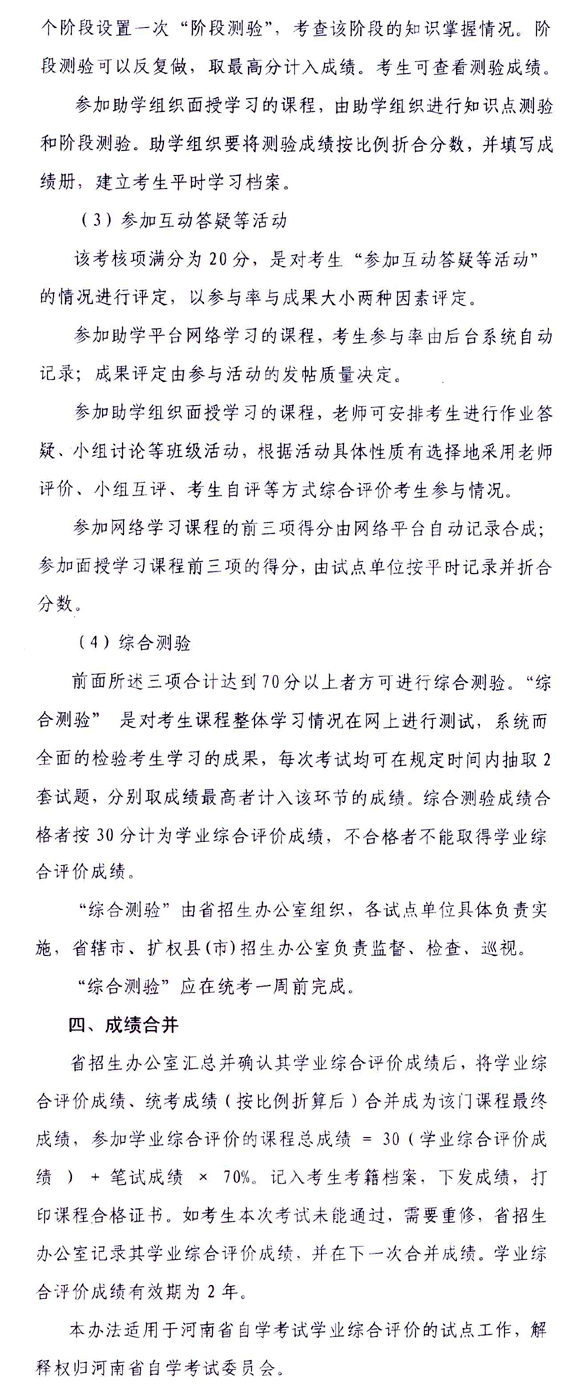 河南自考部分課程實(shí)施學(xué)業(yè)綜合評(píng)價(jià)