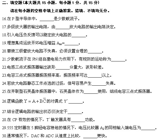 全國(guó)2011年7月自考電子技術(shù)基礎(chǔ)(二)試題