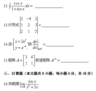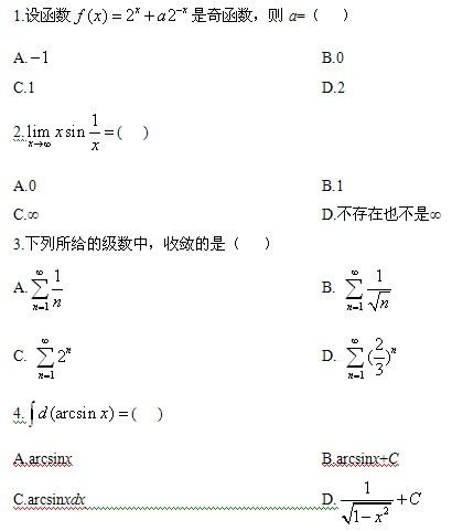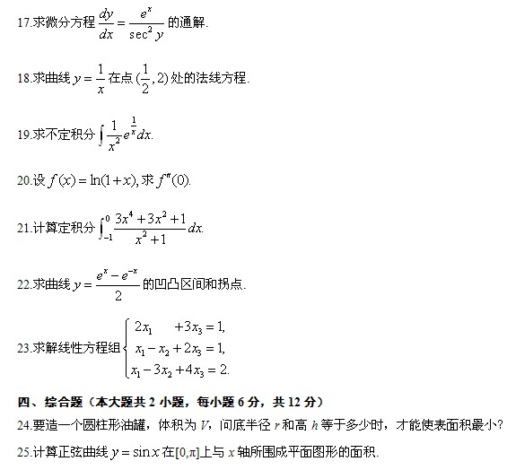 全國(guó)2011年10月自學(xué)考試高等數(shù)學(xué)(工專)試題