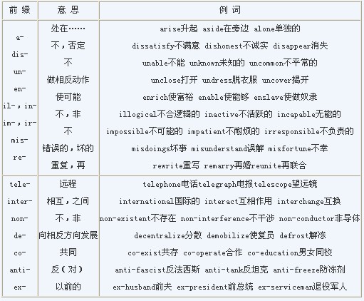 (1)派生:通過在詞根上加前綴或后綴構(gòu)成另一個詞。