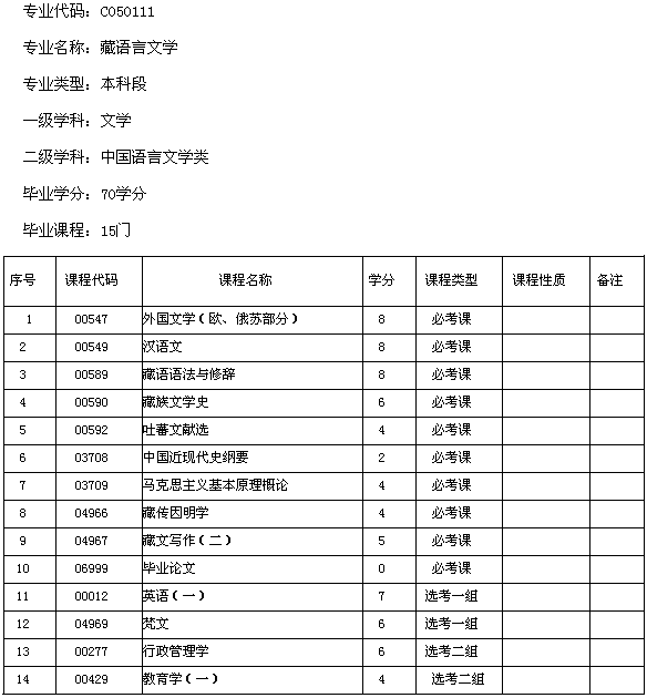 西藏2013年自考藏語言文學(xué)(本科)考試計劃