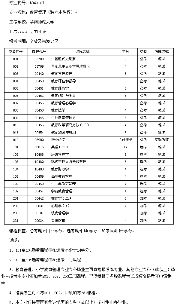 廣東2013年華南師范大學(xué)教育管理(本科)考試計劃
